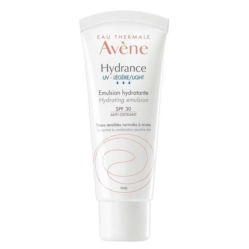 AVENE HYDRANCE UV LEGERE Lekki krem nawilżający SPF30 zapewnia długotrwałe nawilżenie i ukojenie. Dodatkowo chroni skórę przed szkodliwym działaniem czynników zewnętrznych (UV, wolne rodniki, zanieczyszczenia środowiska). Jest przeznaczony do skóry wrażliwej, normalnej i mieszanej.