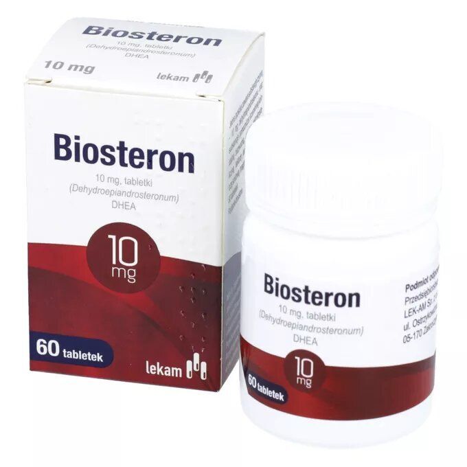 Biosteron 10mg to lek dostępny bez recepty (OTC), zawierający dehydroepiandrosteron (DHEA) – naturalny hormon steroidowy produkowany przez nadnercza. Substancja ta odgrywa istotną rolę w organizmie, ponieważ stanowi prekursor hormonów płciowych: estrogenów u kobiet i androgenów u mężczyzn.