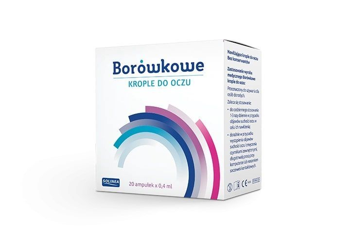 BORÓWKOWE to krople do oczu z borówką czarną i kwasem hialuronowym. Nawilżają i łagodzą objawy suchości oczu oraz niwelują ich podrażnienie i zaczerwienienie.