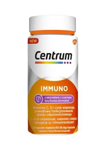 Centrum Immuno z ekstraktem z czarnego bzu to suplement diety, który zawiera formułę o potrójnym działaniu - witaminy, minerały, składniki naturalne - do całorocznego wsparcia odporności: Witamina C, D, Cynk + Ekstrakt z czarnego bzu. Ekstrakt z czarnego bzu pochodzi ze źródeł naturalnych i pomaga wspierać naturalne siły obronne organizmu.