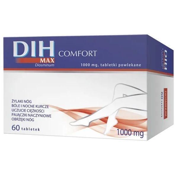 Tabletki powlekane DIH MAX COMFORT zawierają diosminę, związek zaliczany do tzw. bioflawonoidów. DIH zwiększa napięcie naczyń żylnych oraz działa ochronnie na naczynia.