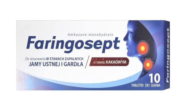 Faringosept jest lekiem odkażającym stosowanym w zakażeniach jamy ustnej i gardła. Wykazuje
