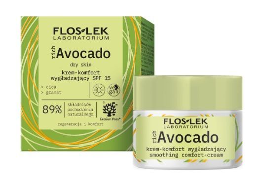 richAvocado Krem-komfort wygładzający do cery suchej, dojrzałej, filtr SPF 15, olej z awokado, cica, granat