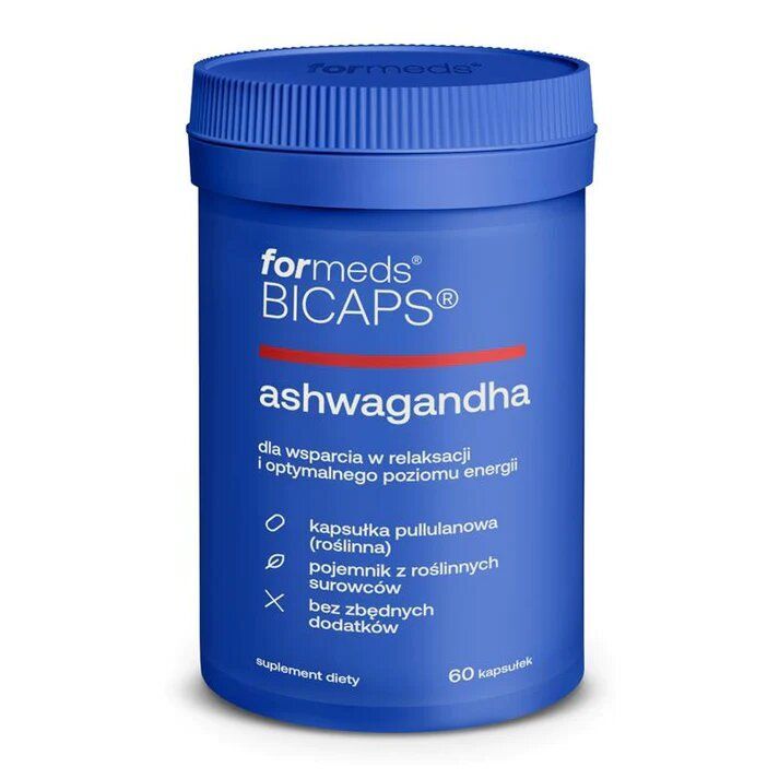 BICAPS ASHWAGANDHA zawiera ekstrakt z korzenia indyjskiego (ashwagandhy) z wysoką zawartością jego aktywnych składników - 29 mg witanolidów. Czysty skład - produkt nie zawiera m.in. sztucznych wypełniaczy, przeciwzbrylaczy i barwników. Naturalna, wegańska kapsułka z pullulanu - pozyskiwanego w procesie fermentacji. Pojemnik wytworzony z użyciem roślinnych surowców. Produkt odpowiedni dla wegetarian i wegan.