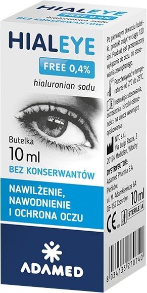 Hialuronian sodu 0,4%, wodoroortofosforan disodu dwunastowodny, diwodoroortofosforan sodu jednowodny, chlorek sodu, woda