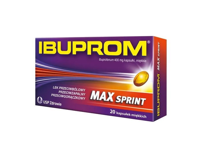 Lek Ibuprom Max Sprint zawiera ibuprofen - substancję czynną należącą do grupy tak zwanych niesteroidowych leków przeciwzapalnych (NLPZ). Jest lekiem działającym przeciwbólowo. Pomaga zwalczać stan zapalny, który jest jedną z przyczyn bólu. Lek obniża również gorączkę.