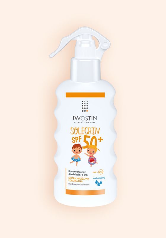 Iwostin Solecrin Spray ochronny dla dzieci SPF 50+, który zapewnia bardzo wysoką ochronę przed słońcem. Iwostin do opalania dedykowany jest delikatnej i wrażliwej skórze dziecka. Wodoodporna i odporna na piasek formuła zapewnia natychmiastową ochronę przed szkodliwym promieniowaniem UVA i UVB. Spray do opalania może być aplikowany na wilgotną skórę dziecka.