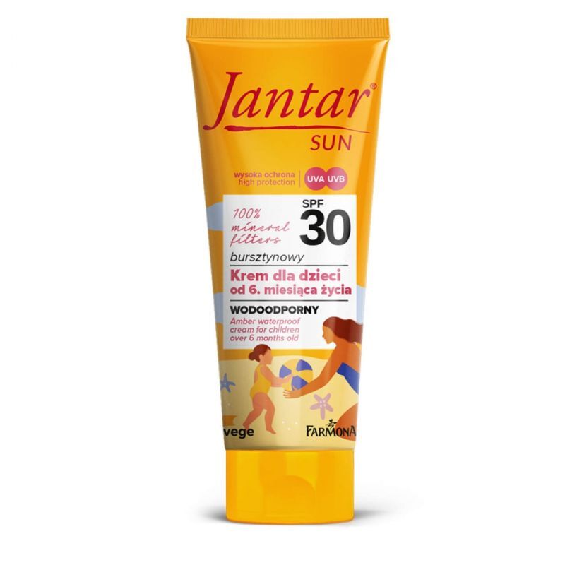 Odkryj bursztynowy wodoodporny krem dla dzieci (od 6. miesiąca życia) z filtrami mineralnymi SPF 30 od Jantar Sun i zapewnij swojemu dziecku nie tylko bezpieczną ochronę przeciwsłoneczną, ale również intensywną pielęgnację, która dba o zdrowie i komfort jego delikatnej skóry. Fotostabilne Filtry Mineralne UVA i UVB: Zapewniają skuteczną ochronę przed poparzeniami słonecznymi oraz szkodliwym działaniem promieniowania UV, bezpiecznie dla wrażliwej skóry dziecka. HEV Shield: Chroni przed spektrum promieniowania niebieskiego, które może powodować ziemisty koloryt skóry, zapewniając kompleksową ochronę. Formuła jest hypoalergiczna i przeznaczona również dla dzieci z wrażliwą skórą oraz skłonnością do alergii. Lekka konsystencja kremu szybko się wchłania, nie pozostawiając białych śladów ani tłustego filmu na skórze, co sprawia, że jest łatwy w aplikacji i wygodny w użyciu. Kram nie zawiera kompozycji zapachowej.
