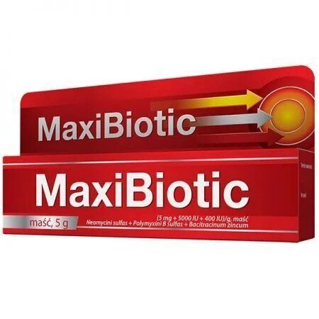 Maxibiotic to lek w postaci maści, stosowanym miejscowo na skórę. Lek zawiera trzy antybiotyki o uzupełniającym się zakresie działania przeciwbakteryjnego wobec bakterii będących przyczyną większości zakażeń skóry.