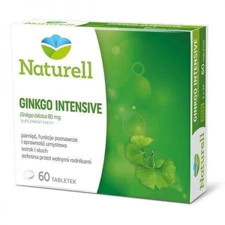 Naturell Ginkgo Intensiv to suplement diety opracowany z myślą o osobach dorosłych, które chcą zadbać o utrzymanie sprawności umysłowej na właściwym poziomie. Preparat wspomaga ochronę organizmu przed niszczącym wpływem stresu oksydacyjnego oraz wykazuje korzystny wpływ na krążenie obwodowe.
