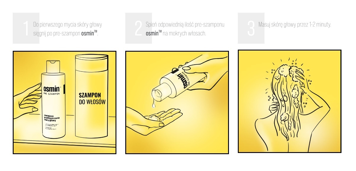 osmin pre-szampon do włosów przetłuszczających się to kosmetyk głęboko oczyszczający, przeznaczony do stosowania jako szampon wstępny. Regularne stosowanie pre-szamponu osmin ogranicza nadaktywność gruczołów łojowych sprawiając, że skóra głowy oraz włosy pozostają świeże na dłużej.