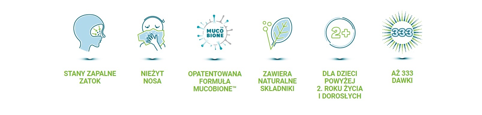 Zawarta w wyrobie opatentowana formuła MUCOBIONE™ działa wielokierunkowo i pomaga zredukować ilość drobnoustrojów, ale także innych szkodliwych czynników (jak: alergeny, pyły, cząstki kurzu w jamie nosowej).