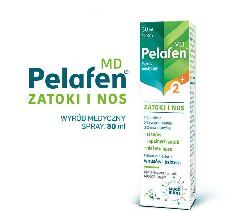 Wyrób medyczny Pelafen® MD Zatoki i Nos spray dla dzieci powyżej 2. roku życia stosuje się do profilaktyki oraz wspomagania leczenia objawów stanów zapalnych zatok i nieżytu nosa różnego pochodzenia, w celu ułatwienia mechanicznego usuwania drobnoustrojów z jamy nosowej.