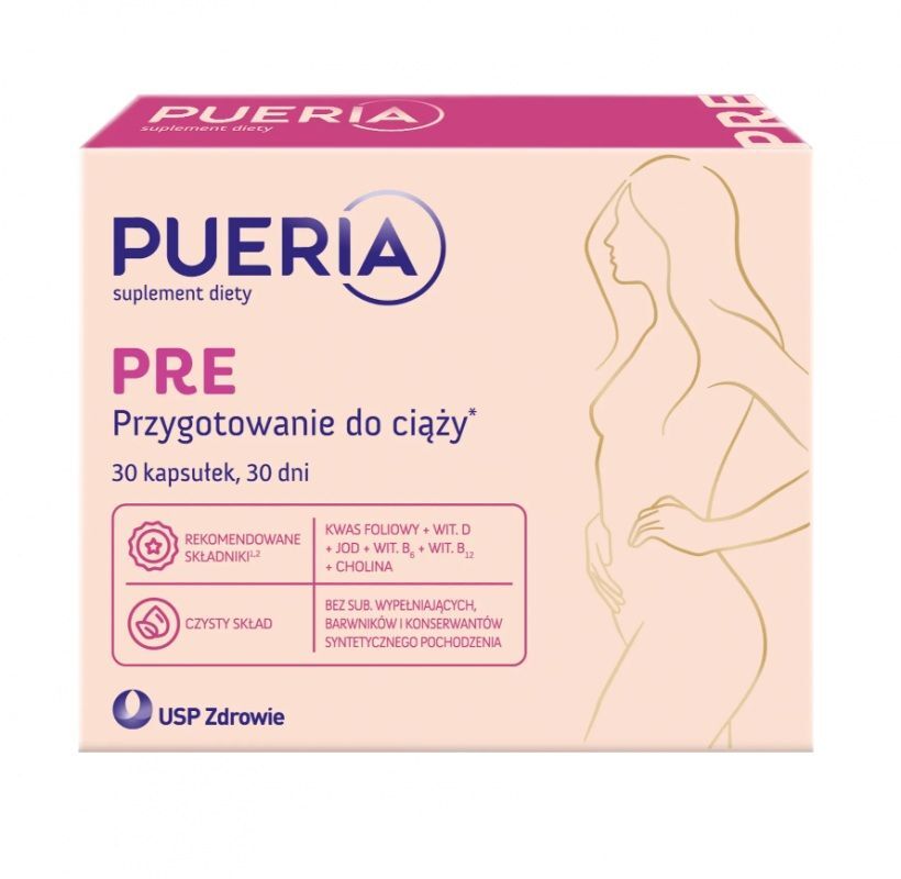 Pueria Pre to suplement diety opracowany z myślą o kobietach, które planują ciążę i chcą odpowiednio przygotować organizm jeszcze przed zapłodnieniem. Produkt uzupełnia codzienną dietę w starannie dobrane witaminy i składniki mineralne, kluczowe w okresie prekoncepcji.