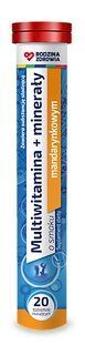 Rodzina Zdrowia Multiwitamina + minerały to suplement diety w postaci tabletek musujących o smaku mandarynkowym. Przeznaczony dla osób dorosłych jako uzupełnienie diety w 10 witamin oraz 7 składników mineralnych.