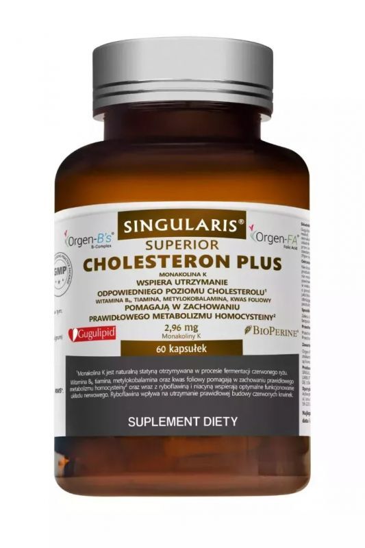 Gugulipid® - standaryzowany ekstrakt z balsamowca indyjskiego (Commiphora mukul), standaryzowany ekstrakt z czerwonych drożdży z ryżu zawierający 4% monakoliny K, substancja wypełniająca (celuloza mikrokrystaliczna, maltodekstryna), składnik otoczki (żelatyna), witaminy z grupy B - ORGEN B's®, , substancja przeciwzbrylająca (sole magnezowe kwasów tłuszczowych), Orgen®-FA, standaryzowany ekstrakt ze skórek cytryny ekstrakt z owoców pieprzu czarnego (Piper nigrum) - Bioperine®, metylokobalamina (witamina B12).