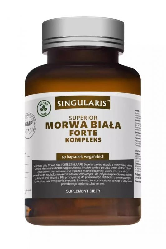 Ekstrakt z lis´cia morwy białej (Morus alba L.) – 1000 mg, Ekstrakt z kory cynamonowca (Cinnamomum cassia) – 200 mg, Chrom (pikolinian) – 40 µg, Witamina B12 (metylokobalamina) – 5 µg.