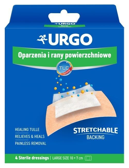 URGO opatrunek na oparzenia z unikalną technologią lipidokoloidalną – nie przywierają, przepuszczają powietrze. Dzięki warstwie ochronnej zbudowanej z poliestru i siateczce w technologii lipidokoloidalnej połączonej z elementami hydrokoloidowymi oraz wazeliną uśmierza ból i sprzyja gojeniu. Ponadto plaster nie przykleja się do rany i można go bezboleśnie zdjąć.