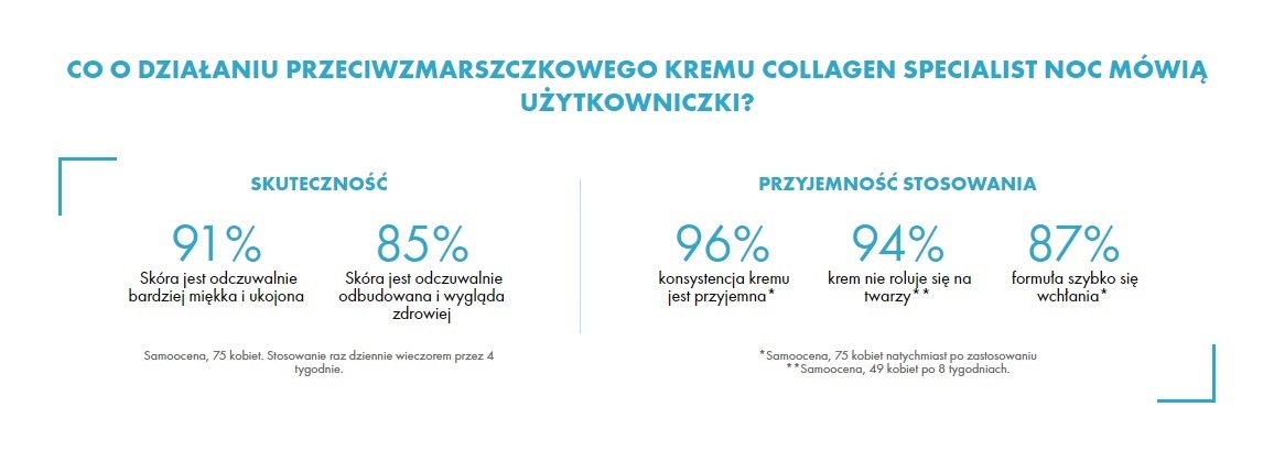 Odżywczy krem na noc redukujący zmarszczki Collagen Specialist Noc jest odpowiedni dla skóry wrażliwej. Hipoalergiczny. Testowany pod kontrolą dermatologiczną.