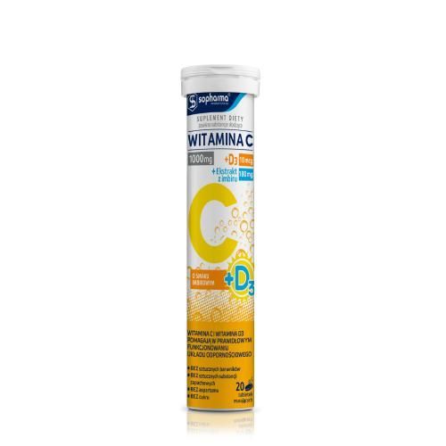 Witamina C (kwas L-askorbinowy), Witamina D3 (cholekalcyferol), Ekstrakt z imbiru (Zingiber officinale), kwas cytrynowy, wodorowęglan sodu (regulator kwasowości), sorbitol (substancja wypełniająca), sukraloza (substancja słodząca), naturalny beta-karoten (barwnik).