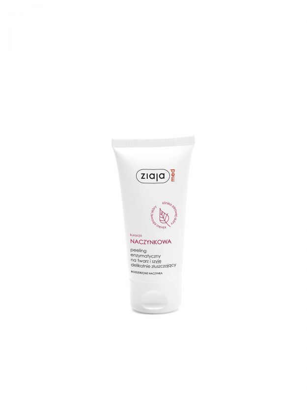 Peeling enzymatyczny na twarz i szyję delikatnie złuszczający Ziaja Med Kuracja Naczynkowa przeznaczony jest do codziennej pielęgnacji skóry z rozszerzonymi naczynkami.