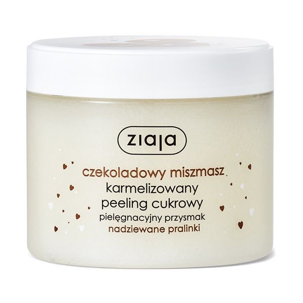 Ziaja Czekoladowy Miszmasz Karmelizowany peeling cukrowy Nadziewane pralinki skutecznie wygładza skórę dzieki zawartości naturalnych kryształków cukru. Ta czekoladowa pielęgnacja pozostawia Twoją skórę miękką i smakowicie pachnącą. Kosmetyk testowany dermatologicznie.